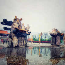 行于殿堂楼舍之中,袁志伟老师向同学们一一介绍重阳宫背后的历史沿革与全真教过往的发展历程:王重阳主张儒、释、道三教合一,以"三教圆通,识心见性,独全其真"为宗旨,故名其教为全真。其弟子丘处机受到元太祖成吉思汗的器重,使得全真教在北方愈益兴盛,重阳宫则因其独特的历史地位成为全真教祖庭。