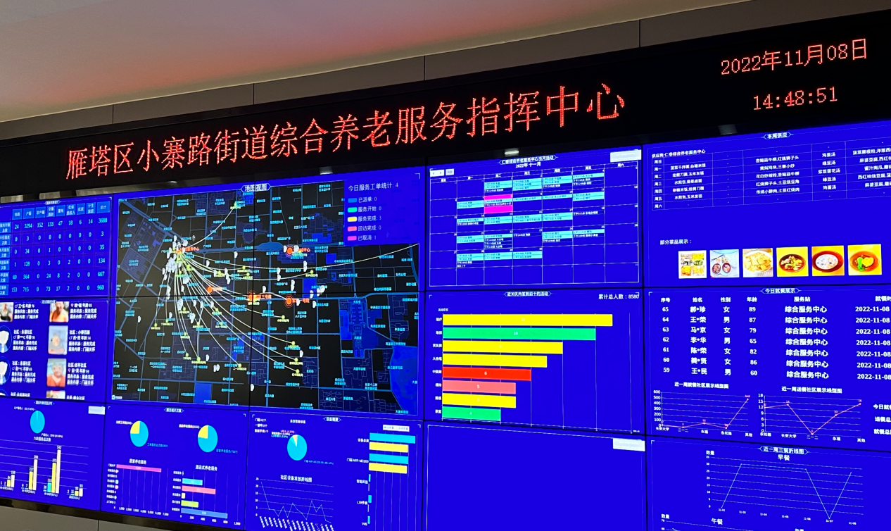 随后中心负责人向团队介绍了数字化养老服务指挥中心。调研团队通过中心负责人的讲述和演示,了解到该中心利用技术手段,数字化服务辖区站点的老年人信息、活动情况、服务频率等,开辟了一条智慧化新型养老道路。